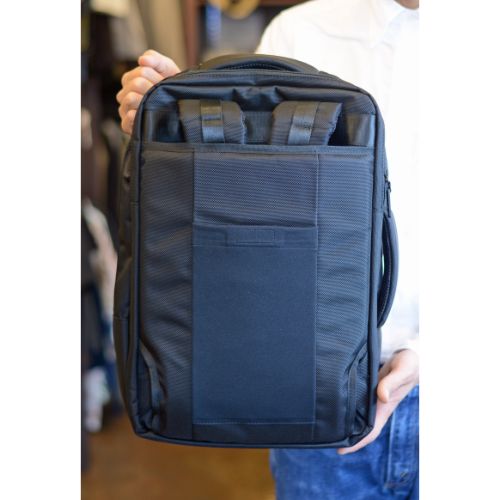 リュックサックとブリーフの2WAYで使用でき、手持ちの際はショルダーベルトをすっきりと背面に収納できるようになっています。