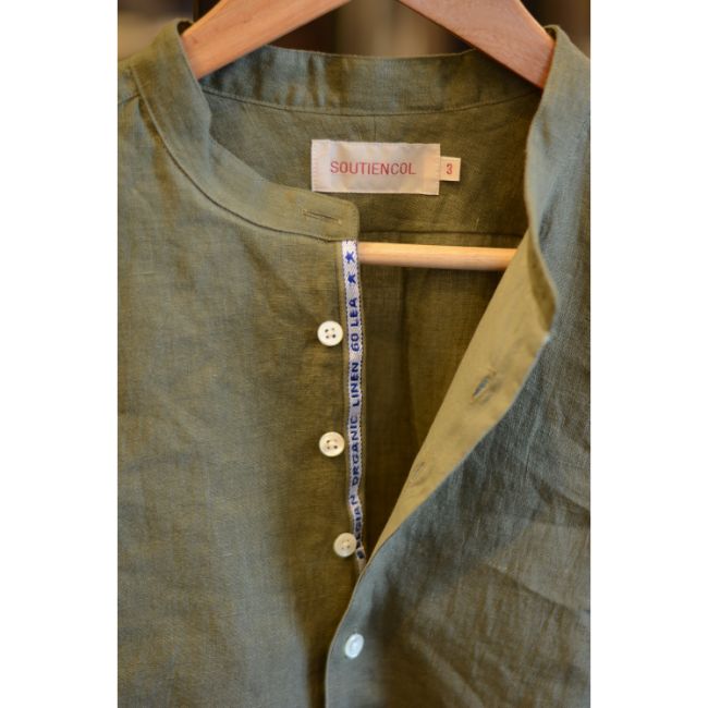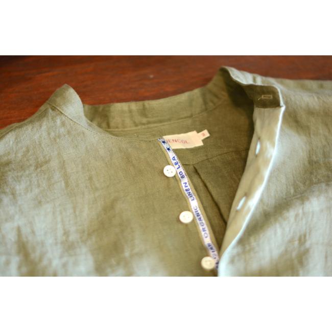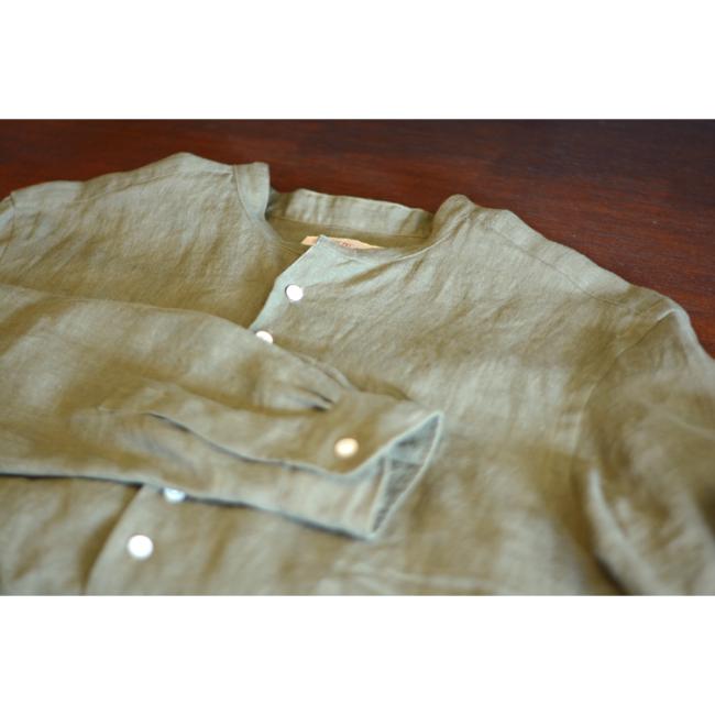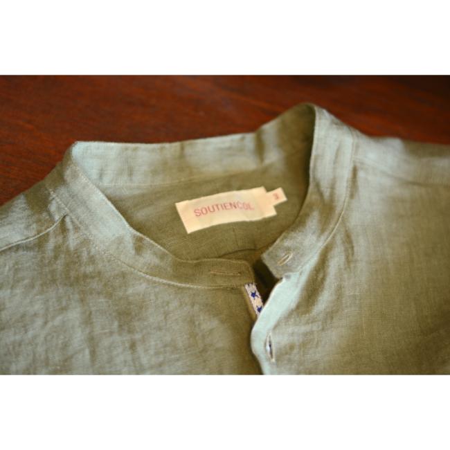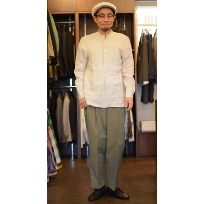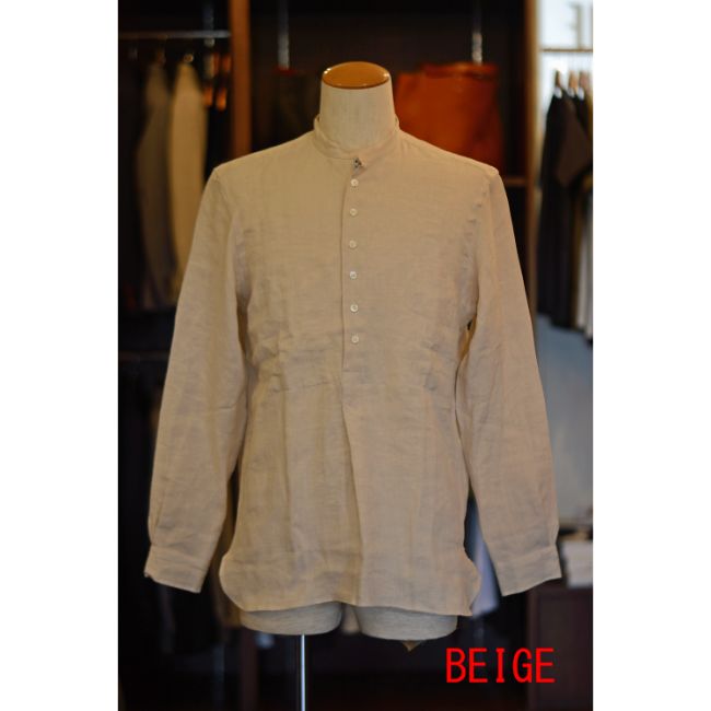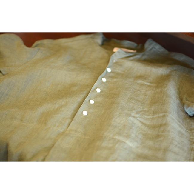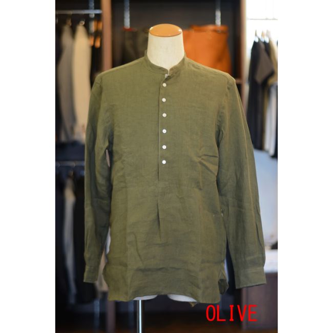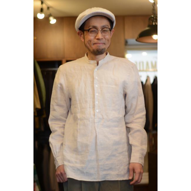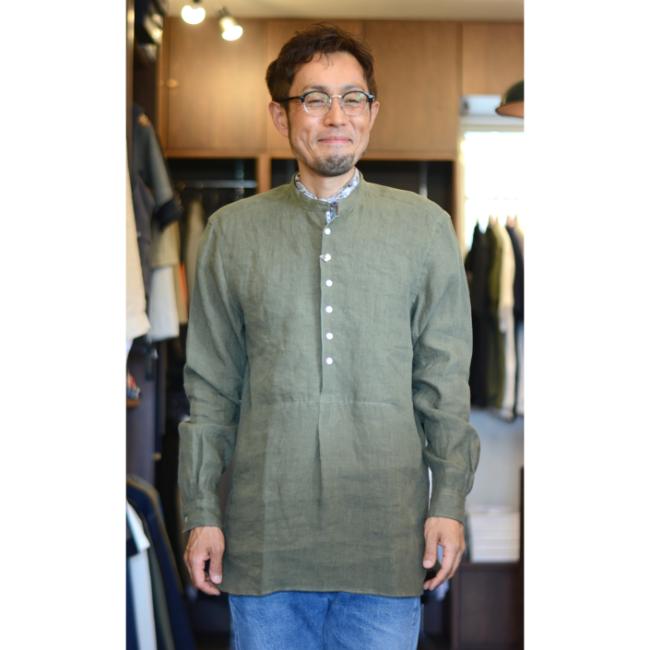 プルオーバー仕様のバンドカラーシャツです。