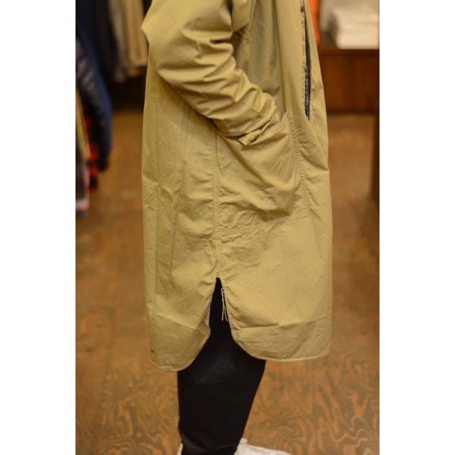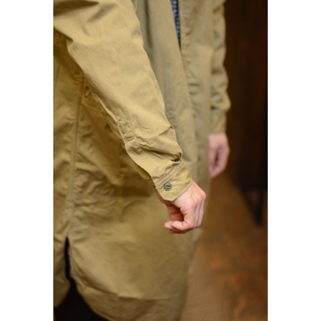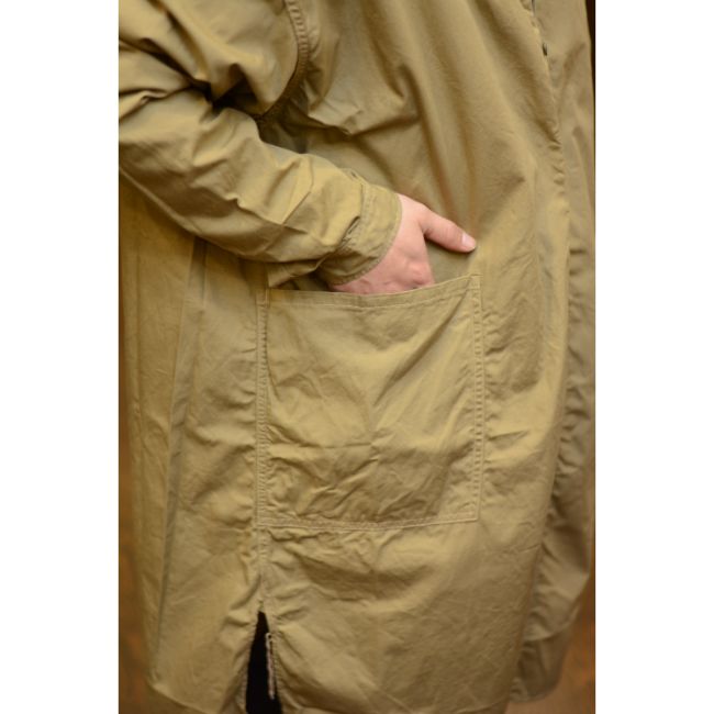 ミリタリーウェア等でよく使用されるスレン染料で染めた、しっかりとした打ち込みのコットンポプリン素材。