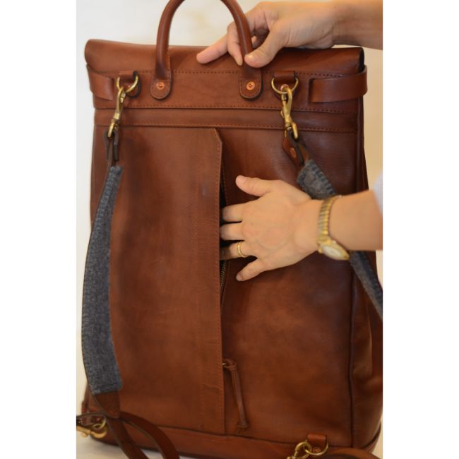 背面にはファスナーが付いており、メイン収納部分と繋がっており、荷物の出し入れができます。