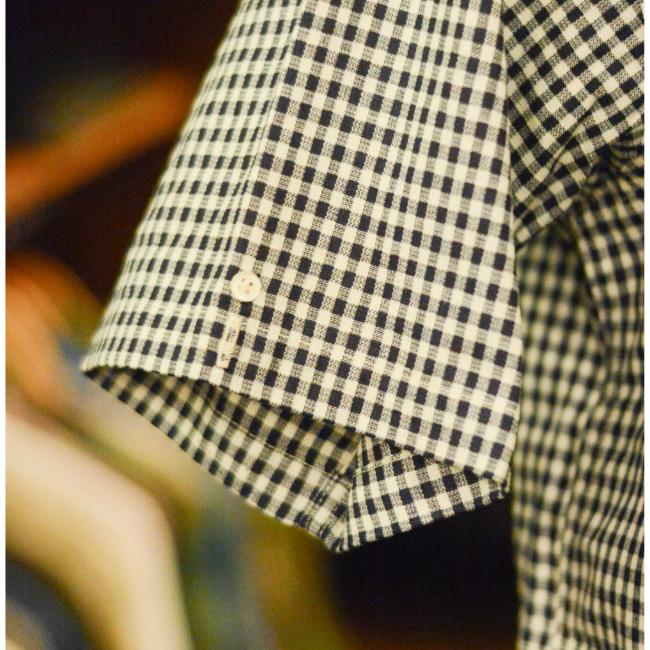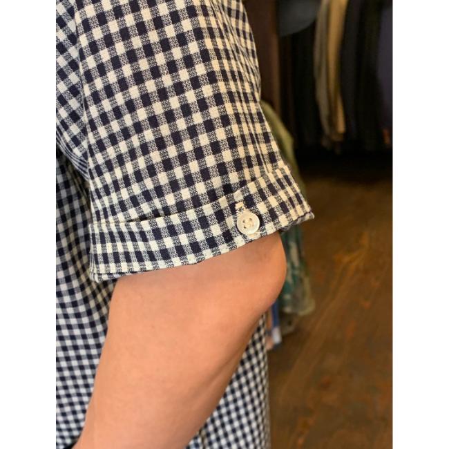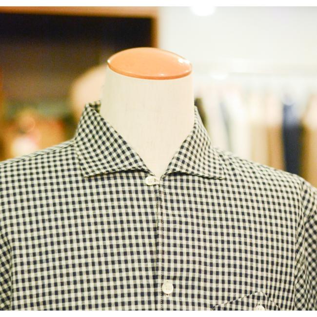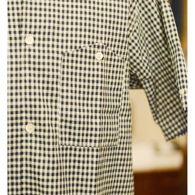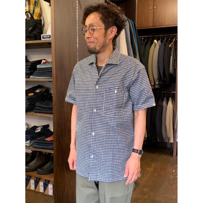 毎シーズン柄を変えて展開する定番型の山形ポケットシャツ。