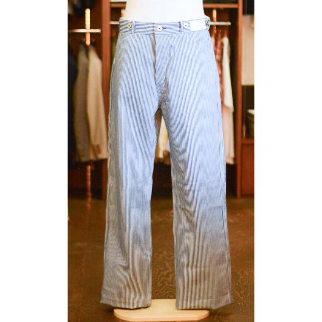 ジャケットは主に鉄道員よって着用されること多かったようで、ヒッコリーストライプの柄と袖口のカフスにその気品とプライドを感じさせます。