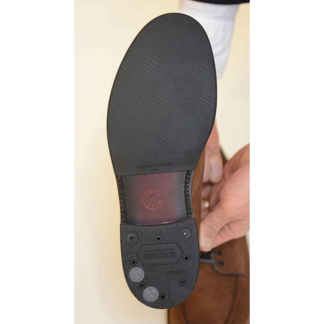 ソールはハーフラバー仕様になっていて、滑りやすく雨にも弱いレザーソールのデメリットをハーフラバーにすることにより補っています。
