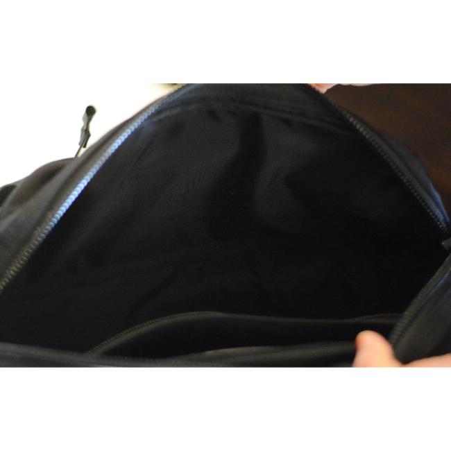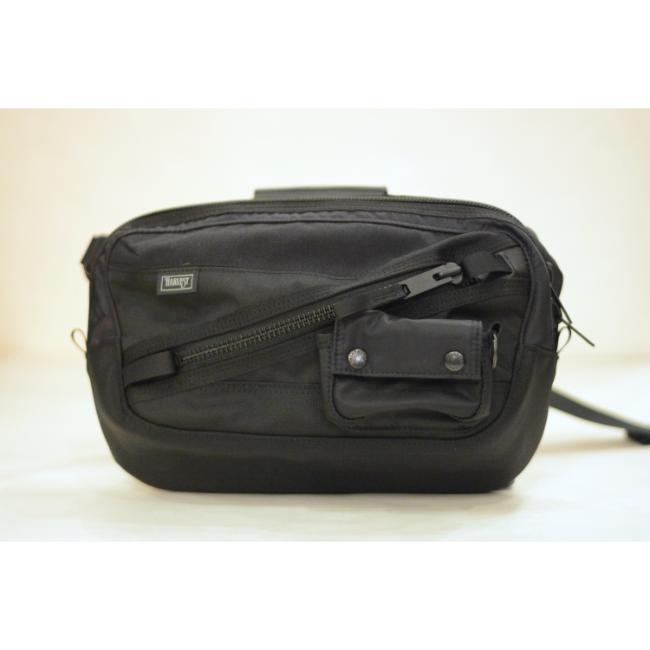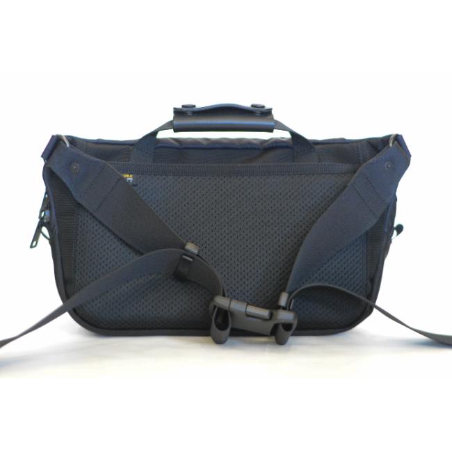 ショルダーストラップには太めのテープを用いており、負荷を感じにくい仕様になっております。バックルが付属しているのでウエストでの使用も可能です。