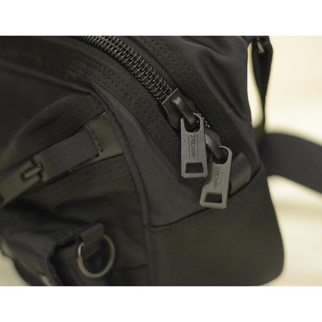 フロントに流れる無骨な金属ファスナーを使用したポケットと、ワイヤレスイヤホンサイズのフラップポケットがコレクション共通のデザインになっております。
