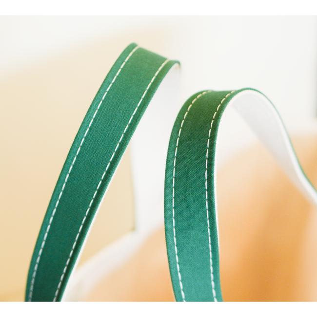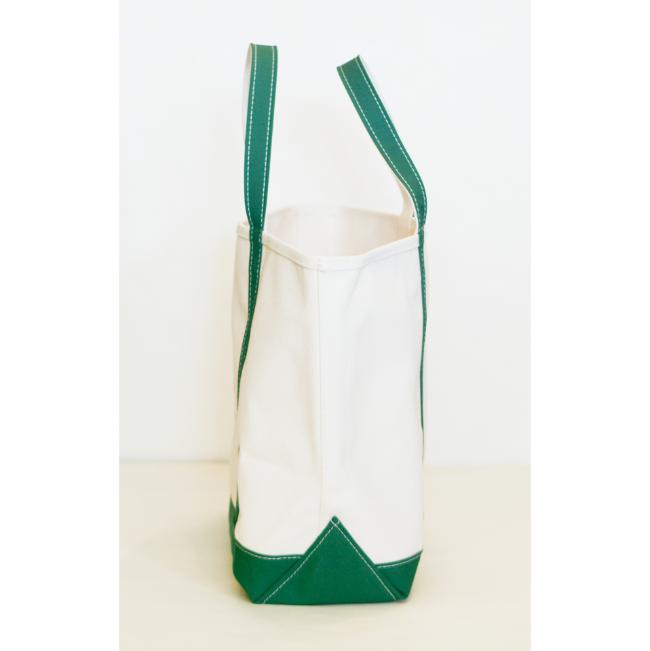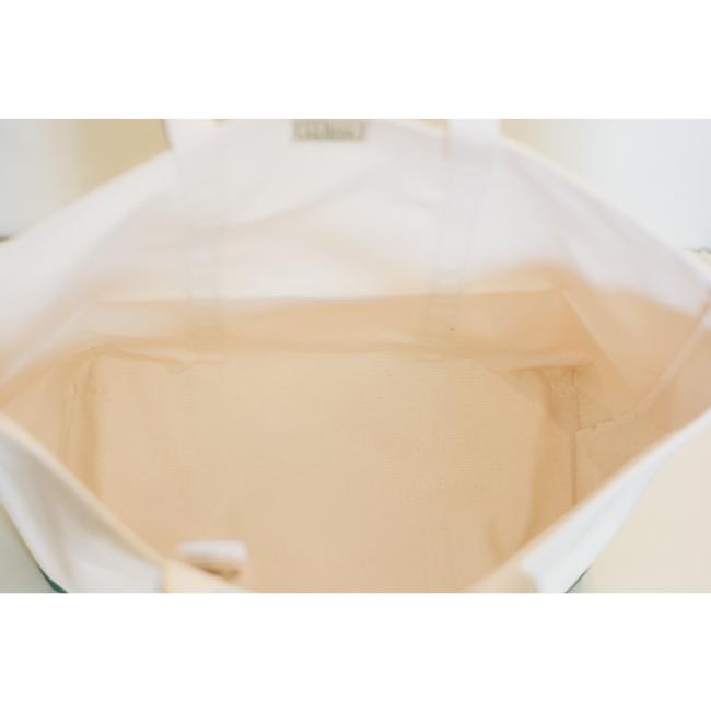 ナチュラルなキャンバス地のボディーに、コントラストカラーのハンドルがアクセントになっております。