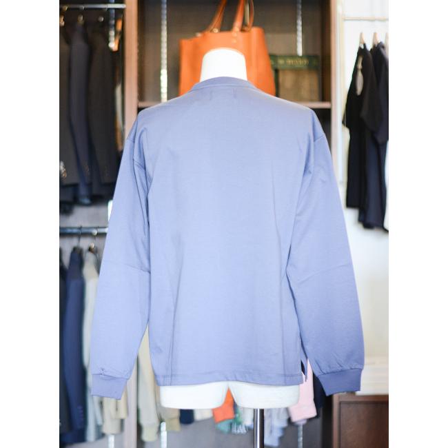 ゆったりとしたシルエットながらも、小ぶりの襟回りによって顔回りはすっきりとした印象に見える季節を問わず使えるベーシックなロンTです。