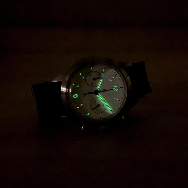 本モデルの蓄光は雰囲気を重視したために他モデルのルミナスより幾分蓄光時間・光が劣ります。