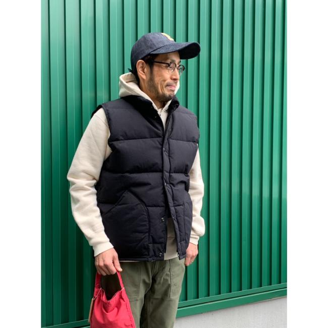 秋冬コーディネートに欠かせない厚めのダウンベストです。